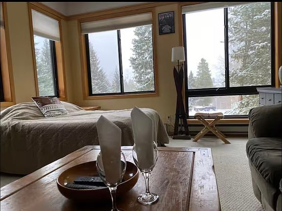 Garage! Big Mountain views from this oversized, fully furnished, fully equipped studio. With a new queen memory foam mattress, 64 inch TV, free cable and Wi-Fi , all utilities included. You have one garage space, two outdoor hot tubs, walking trails and riding and skiing right out your front door! 60 second walk to the Peru lift! Looking for midterm or long-term tenant. This is a quiet building. The Wi-Fi is very strong if you work remotely / from home. This is a perfect central Keystone location to enjoy all the resort has to offer, trails, shops, and restaurants, all within walking distance,