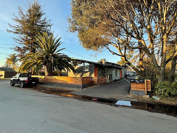 mid century modern, just renovated, all new appliances, new bathrooms, paint inside + outside, new flooring, large rooms, heating, laundry, parking for 9 cars