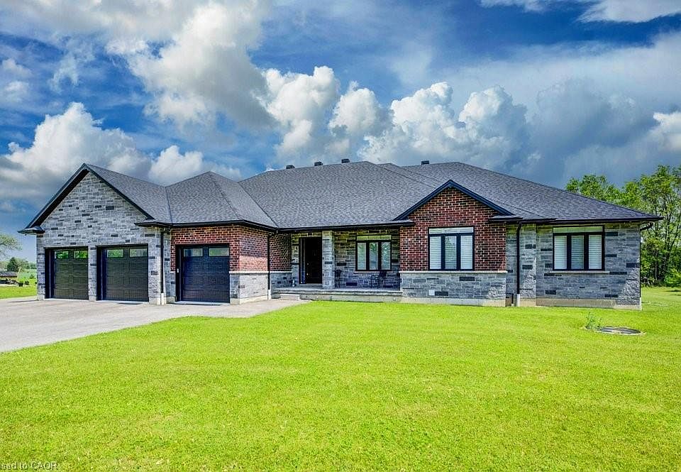 Stunning Custom-Built 4-Bedroom Home with Heated Shop on Expansive Lot Welcome to this beautifully crafted 2023 all-brick and stone home offering 4 bedrooms, 3-car attached garage, and premium finishes throughout. Situated on a serene 165’ x 170’ lot backing onto open farmland, enjoy peace, privacy, and modern comfort. The home features 24” x 48” porcelain tile in the entry, kitchen, dinette, mudroom, and bathrooms, while wide plank hardwood flooring flows through the living room and bedrooms. The kitchen is a chef’s dream with custom cabinetry, quartz countertops and backsplashes, built-in double ovens, and an induction cooktop. The master ensuite and enclosed back porch both offer WiFi-enabled electric in-floor heating. Additional highlights include 7’ solid interior doors, quartz surfaces in all bathrooms and laundry, and energy-efficient LED pot lights throughout. A full in-law suite with a private entrance from the garage provides flexible living options. The basement boasts hydronic radiant heated floors, a finished powder room, and rough-in for a second full bath. Bonus: a 24’ x 30’ heated shop with separate hydro meter and 4’ foundation—ideal for future second-level living or greenhouse addition. Utilities include a 24kW Generac standby generator, 6,000-gallon cistern with advanced Viqua filtration/UV system, and septic (2023). This exceptional property combines craftsmanship, functionality, and future-ready features—perfect for multi-generational living or hobby enthusiasts.