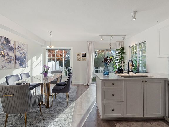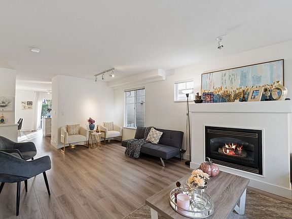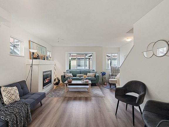Do not miss this one! A bright 1,371 sqft corner townhouse featuring an open-concept layout with oversized windows, high ceilings & an abundance of natural light throughout. New updates include flooring, paint, kitchen countertops, Hot Water Tank, Heat Pump & AIR CONDITIONING. Great layout, kitchen opens directly onto a private patio & backyard—perfect for relaxing or entertaining. Upstairs, you’ll find 2 bedrooms with the option to easily add a third. Garage provides parking for 2 vehicles plus room for storage or a workshop. Conveniently located near schools, shopping & transit. An excellent opportunity for 1st time buyers or investors alike—don’t miss your chance to call this beautiful home your own! Open house sat/sun Nov 15&16 2-4pm