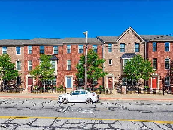 The entry level, redesigned by Weber Architecture as an office with a mudroom, features custom built-in bookshelves, two large closets, crown molding, ample dimmable LED lighting, new Marvin windows, and new custom carpet with direct access to the two-car garage. Upstairs, tall ceilings and large windows fill the main living area with natural light. The open layout connects the living room, dining space, and kitchen, creating a comfortable flow for everyday life and easy entertaining. The kitchen features granite countertops, an island with seating, and access to a small balcony—ideal for morning coffee and evening breeze. Three bedrooms, two full baths, and a convenient laundry area comprise the top floor. Weber Architecture redesigned the primary suite, walk-in closet, and ensuite bath. The primary bedroom features custom finishes, crown molding, wood shutters, dimmable LED lighting, wall scones by Rejuvenation, new carpet, and an imported hand-painted wallpaper mural. The ensuite bath offers an imported pedestal dual sink, custom mirror, smartly tiled shower, brass fixtures and wall scones, and generous built-in storage. About half a mile from Lake Erie’s Gold Coast, near grocers and Lakewood’s cafes and restaurants, this home combines modern living with a welcoming sense of place.