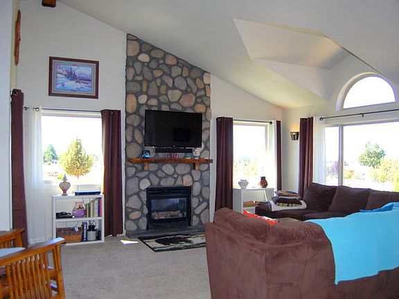 Immaculate Craftsman home privately situated on 5 acres in Powell Butte. Panoramic Cascade Mountain and Smith Rock views off Riggs Road. Pride of Ownership is evident throughout this single level, 1993 built, 3 bedroom, 2 bath, 1478 sq.ft. home with enclosed sun room/porch with hot tub. Enjoy the open kitchen, dining area and vaulted living room with floor to ceiling stone gas fireplace and ample natural light. Quartz counters being installed in kitchen. Artistically landscaped with paver entry to covered front porch. Access to large covered deck in back from master suite or sun room. Double car attached garage has access to side storage and back yard. Fenced back yard, storage building, tool shed and raised beds with drip lines and under ground sprinkler system. Owner completed a Wildfire Mitigation Project for fire protection on 4.5 acres. Minimal upkeep for this beautifully maintained home. Priced to Sell, Don't Wait to See!