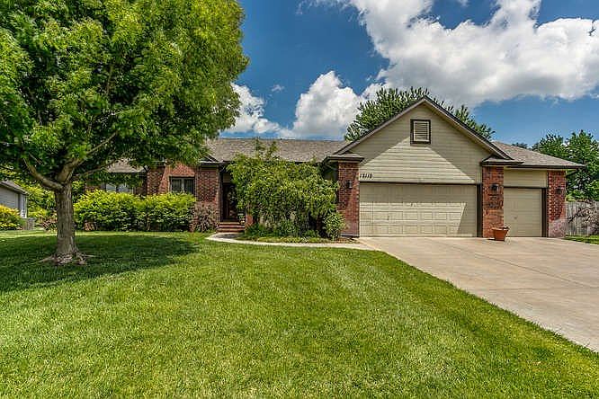 Beautiful Home inside & out. It has so much to offer from Formal Dining & Living Rooms to the Kitchen/Hearth area with 2 sided Fireplace with Stacked Stone, Built-in Desk, Quartz Countertops, Stainless Appliances and Pantry in Kitchen. Main Floor Laundry off of Kitchen. Master Bath has been Updated with Tiled Shower, Whirlpool Tub, Quartz Vanity & Even has Heated Floors. Walk out Basement includes 2 Bedrooms, a Bathroom, Large Family Room with Fireplace, and Wet Bar plus Storage. You will Love the Outdoor Living Space including Lovely Stone Patio, with Built-in Grill and Fire Pit. Yard has Beautiful Trees. Altogether a Wonderful back yard to Enjoy with your Family and Friends. Great Neighborhood with Lakes, Swimming Pool & Play Ground in Goddard Schools. Home is Priced Below Appraisal done in 2013 for $285,000. Making it Below the Average Price per sq. ft. home in the area. Although above Average in Condition and Updates.