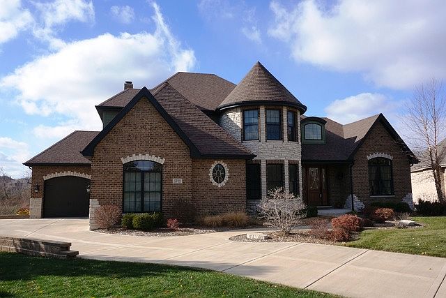 Awesome Two Story featuring a dramatic stone turret & an 8'' entry door. The Prime Cul-de-sac setting overlooks pristine natural area. Top notch craftsmanship includes arched doors & entryways, & awesome spaces for Family living. A fabulous Maple & Granite Kitchen opens to the Family Room. The Master suite w/ Sitting Room is a retreat in itself. Princess Bedroom w/ a vaulted "turret" ceiling, too. BIG Walk-out Basmt!