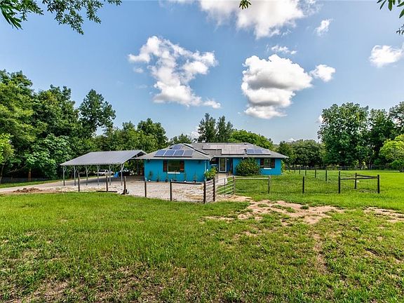 Bring Offers!! This COMPLETELY remodeled beautiful home is settled on nearly 3 acres. Walk along this property to enjoy the variety of mature and productive fruit trees including starfruit, oranges, mangos and figs. Complete solar panel system providing an energy effecient way to live with the bonus of very low electric cost. Power outages are no worries here with the attached, propane filled, back up generator. The kitchen was remodeled wth a cook in mind. Lots of counter space, added bar space, with all new GE appliances and custome light fixtures. Bathrooms are tranquility oasis . Livingroom has majestic beams exposed in the vaulted ceiling. The vinyl plank flooring was hand picked for its water-proof durability. Property has a new chicken coop with a safe roaming area to give the perfect home to your chickens. Zoned for farm animals and plenty of space to accommodate. Located in the heart of Tavares but nestled back to feel like country living. Come take a look and you will fall in love with your new home!