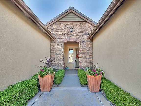 Located in a highly desirable Chino GATED COMMUNITY, this single story home sits on a prime cul-de-sac location and is ready for you to move in! Upon entering through the foyer, you will approach the home's great room that is open and perfect for gatherings. The kitchen offers plenty of cabinet and counter space with stainless steel appliances and is open to the family room, centered around the warm fireplace. The large primary bedroom features an ensuite bath with dual sink vanity, large soaking tub and separate walk-in shower. The home has 4 additional bedrooms, 2 additional full bathrooms, powder room and laundry room with storage cabinets. The den offers additional space with custom built-in cabinets and two workstations, perfect for an at home office. The spacious yard has been beautifully landscaped and features a covered sitting area with fan and fireplace and offers plenty of room to entertain. You will appreciate the producing avocado and Meyer lemon trees. Jacuzzi with hard cover and playhouse are included. Additional amenities include wood shutters throughout and a whole home water filtration system. Located in the Heart of Chino and close to all shopping and dining locations. Come make this your dream home!