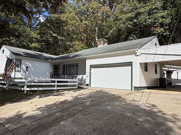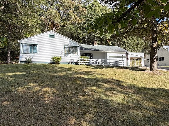 This move in ready, three bedroom, 1 1/2 bath, single level 1,450 sq ft home offers a large, inviting living space with wood burning stone fireplace, dining area that flows both into the well equipped kitchen or to an enclosed sunroom. Off the kitchen is washer and dryer hook up, entry from the two stall attached garage or carport and a convenient half bath. The three bedrooms are all nicely sized with ample closet space and a full hall bath. The home is situated towards the back of a large lot with beautiful oak trees in the front yard, concrete driveway with turn around, hot water baseboard heat and sits on a crawl space. See how this nicely maintained property fits your needs. Taxes are $2301.13
