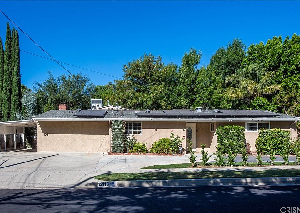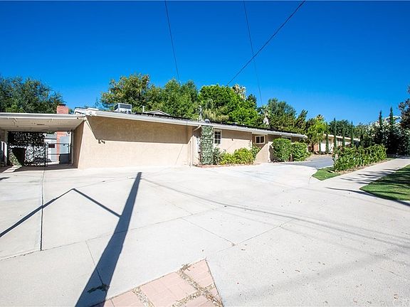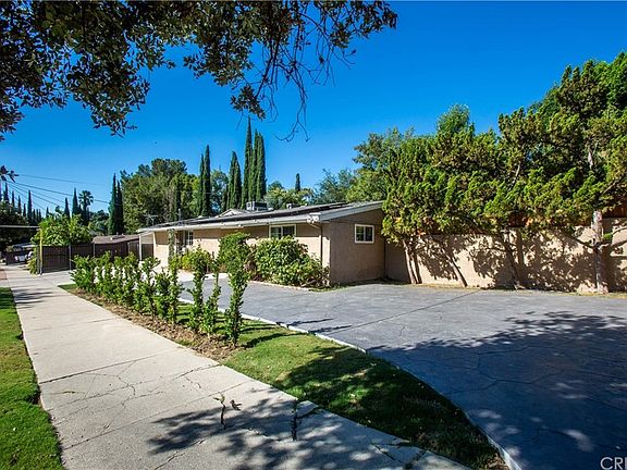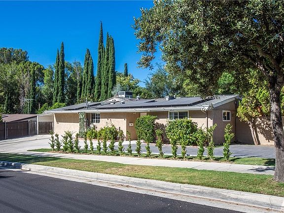 This Mid-Century Ranch Style home is located in the desirable pocket, North of Rinaldi. Perfect for entertaining, the open floor plan connects the family room, dining room and spacious kitchen that features granite countertops and Cherry Wood cabinets. The house also has 4 bedrooms, 2.5 bathrooms, an additional bonus room and indoor laundry room. Master suite with a gas fireplace and vaulted ceilings. Other features include vaulted ceilings, recessed lighting, solatubes throughout, solar panels, two storage sheds and dual-zoned Central Air and Heat system. Dream back yard with serene privacy, mature fruit trees, an inviting solar heated energy efficient pool, jacuzzi, covered patio and plenty of space for entertaining! Don't forget the large driveway and carport that provides plenty of parking. Close to highly rated Charter and Magnet schools, Knollwood Country Club, parks, dining, shopping and major freeways!