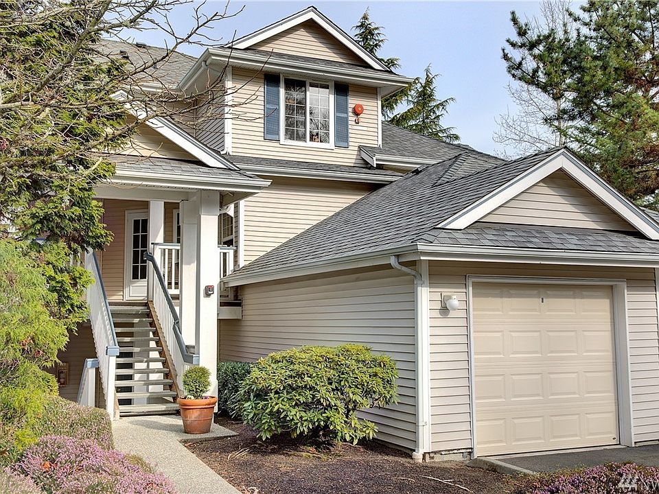 Meticulously maintained top floor gem with ample parking/individual garage/territorial views & well run HOA. Home features remodeled kitchen & bathrooms, cozy gas fireplace, spacious back deck, XL M. Bath, office/den on main level & efficient gas heat/hot water. Easy access to 405/P&R's. Minutes to downtown Bothell/Woodinville (wine tasting culture)/Burke Gilman trail/UW-Cascadia colleges.