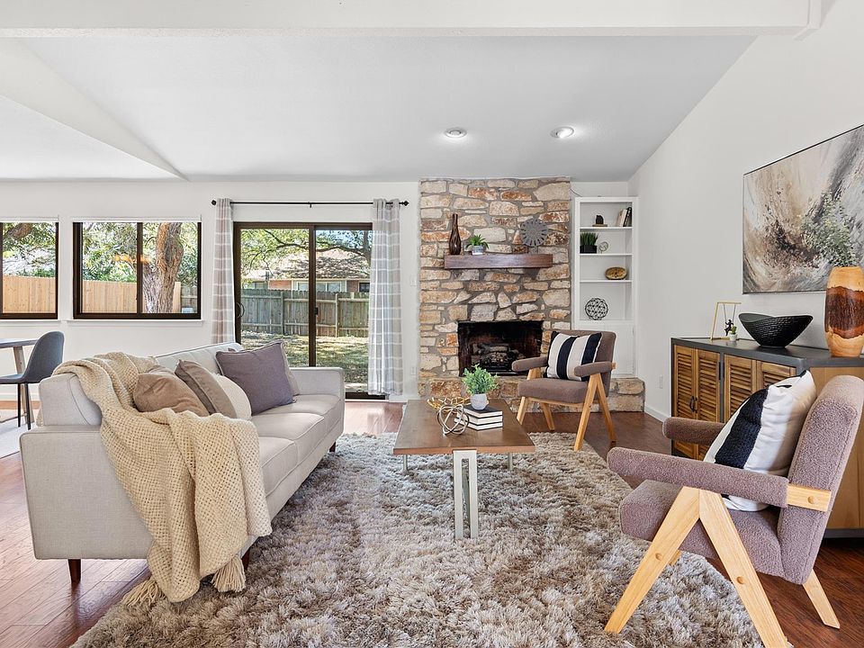 This isn’t just another house in the neighborhood; it’s the one that feels like home the moment you walk through the door. Set in a quiet pocket that feeds into coveted Westwood High, it offers the rare combination of charm, updates, and a backyard you’ll want to brag about. Inside, the living room immediately draws you in with wood floors, a vaulted ceiling, and a stone fireplace flanked by a built-in bookshelf, a space that feels both inviting and memorable. The updated sliding glass door brings in natural light and opens directly to the patio, blurring the line between cozy evenings inside and afternoons under the trees. The kitchen doesn’t just look good, it feels like the kind of place where people gather. Freshly painted cabinetry, new quartz countertops, new stainless steel appliances, and a classic tile backsplash make it shine, while the additional dining area nearby gives you room for everything from quick breakfasts to big dinners. The primary suite is tucked away and spacious, with a walk-in closet and ensuite bath that’s been refreshed with an updated vanity and mirror. Guest bedrooms are light-filled and comfortable, with both bathrooms carrying the same updates. But the real showstopper is out back. A massive oak canopy spreads across the huge yard, shading a patio that begs for weekend barbecues, long conversations, and plenty of room to play or relax. It’s the kind of outdoor space you’ll never want to leave. Just a few blocks from the home, you’ll find two neighborhood parks, with even more green spaces and local gems to explore throughout the surrounding community. Warm, inviting, and move-in ready, this home has personality, space, and updates that make it stand out in a neighborhood where homes don’t last long. Come see it; it might just be the one you’ve been waiting for.