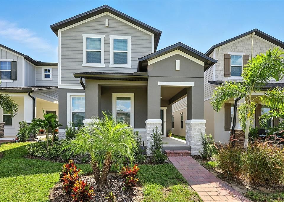 Move-in ready and nearly new, this beautifully upgraded Wekiva floor plan offers a thoughtfully designed layout with a guest suite on the first floor, an open-concept family, dining, and kitchen area, plus inviting outdoor spaces including a large wraparound front porch and a covered lanai. The owner’s suite features two spacious walk-in closets, a frameless glass shower, a stand-alone tub, and dual sinks, while the upstairs loft provides additional living space for entertainment or work-from-home needs. Elegant finishes throughout include wood-look tile flooring, a gourmet kitchen with cooktop and double ovens, quartz countertops, and 42-inch painted linen cabinets. Located in the highly desirable Encore at Ovation community, just 4 miles from Disney, this home offers unmatched convenience with quick access to SR-429, US-192, World Drive, I-4, and SR-417, connecting you easily to Orlando’s top attractions, dining, and major employment centers.