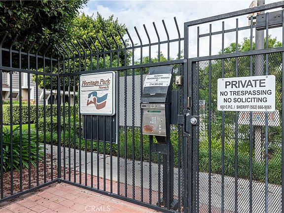 Quiet and updated townhome in a gated community with beautiful grounds and low HOA. This home has 2 large bedrooms, with a high vaulted ceiling in the primary. The 2nd bedroom shares a Jack&Jill bathroom, with granite countertops. Lots of storage in the home, with double closets in the primary, a large closet in the 2nd bedroom and a landing area with additional closets. The kitchen has Corian countertops and all electric appliances, including an induction stove and a built-in microwave. Lots of counter space in a kitchen that is open to the dining and living areas. There is a cozy fireplace in the living room. Ceilings are scraped orange peel, and the home has higher end wood laminate flooring throughout. The 2 car garage has the laundry and direct access to the home. The front courtyard area is large enough for dining, grilling, and has a producing lemon tree, too. This is the quietest corner of the complex, with triple pane windows. Complex is well located for all that Norwalk has to offer, including the "Heart of Norwalk" project. Easy access to the 605, 5 and 91 freeways, means you can call Norwalk home, no matter where you work in the area.