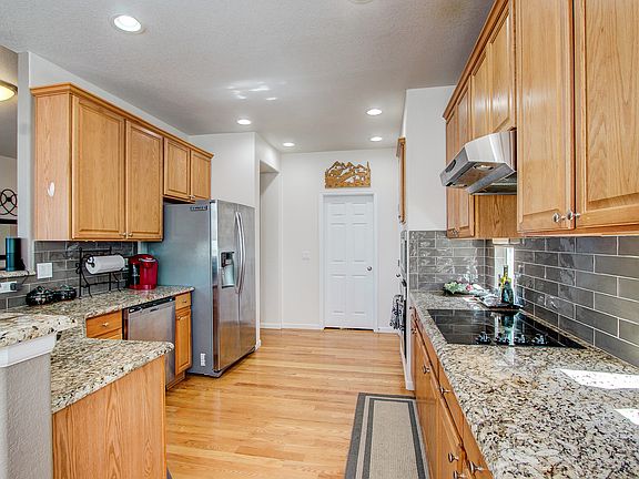 Fabulous, updated 5-bedroom, 3-bath ranch home in golf community. New carpet throughout; hardwood floors in kitchen, large dining space and entryway. Amazing kitchen has new slab granite counter-tops, stainless steel sink and backsplash; newer stainless steel appliances. Great room has vaulted ceilings, soaring windows and beautiful fireplace. Elegant master suite has walk-in closet and large 5-piece bathroom. Great outdoor space includes pond/water feature and patio. Beautifully -finished basement. Main floor laundry, 3-car attached garage with extensive shelving units. Quiet neighborhood is walking distance to both parks and excellent Douglas county schools.