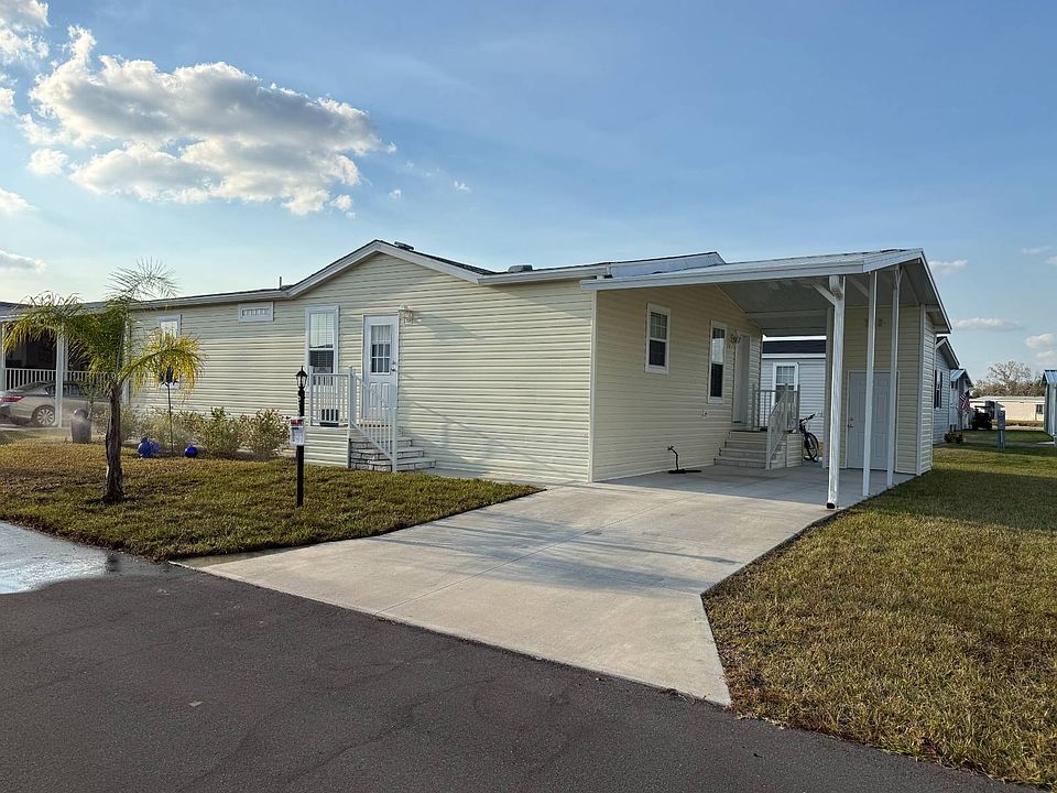 Discover your perfect Florida getaway in this partially furnished 2023 Jacobsen home, located in the highly desirable gated community of The Preserve. This bright and modern 2-bedroom, 2-bath residence offers easy living with quality upgrades throughout. The stylish kitchen features upgraded stainless-steel appliances, and the home comes complete with a washer and dryer for added convenience. The open floor plan provides a comfortable flow for relaxing or entertaining guests. Outside, enjoy a beautiful carport, storage shed, and a welcoming outdoor patio-the ideal spot for morning coffee or evening gatherings. Residents of The Preserve enjoy exceptional amenities, including a gated entry, large clubhouse, heated pool with beach entry, fitness room, pickleball, tennis, bocce, and much more. This home is priced to sell and ready for you to start living your Florida dream!