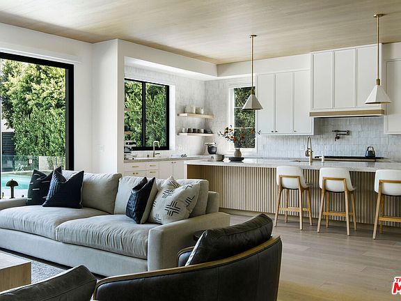 Situated in the heart of Studio City's prestigious Silver Triangle, this newly constructed modern home blends luxurious design with thoughtfully integrated high-end upgrades. Featuring a spacious 5 bed, 5.5 bath main house and a fully outfitted 1 bed, 1 bath ADU, the property offers exceptional versatility for both everyday living and entertaining. The living room features an oversized sliding glass door that opens effortlessly to the backyard, offering seamless indoor/outdoor living. A formal dining room flows into the gourmet chef's kitchen, outfitted with top-of-the-line Thermador appliances, custom cabinetry, and a massive island perfect for casual gatherings or hosting guests. Upstairs, four generously sized ensuite bedrooms await, each with soaring vaulted ceilings. The luxurious primary suite offers a peaceful retreat, complete with a custom walk-in closet, elegant fireplace, and a spa-inspired bathroom with an oversized shower, soaking tub, double vanity, and a dedicated makeup area. Air quality is carefully maintained with dedicated monitoring systems on both floors of the main house as well as in the pool house, ensuring a healthy indoor environment. For added peace of mind and sustainability, the home includes a whole-house three-stage water filtration and conditioning system, along with a reverse osmosis five-stage drinking water tap in both the main residence and pool house. The ADU, with its own full kitchen, bedroom, bath, and living area, is perfectly suited for guests, or used as a guest suite, office, or private gym. Designed with entertaining in mind, the backyard retreat features a sparkling pool and spa, an outdoor kitchen, cozy fire pit, and low-maintenance artificial turf. Located south of the Boulevard and walking distance to Carpenter Elementary School, Fryman Canyon, and the best of Studio City's dining and shopping, this home is a rare offering that combines thoughtful design, luxury upgrades, and prime location in one exceptional home.