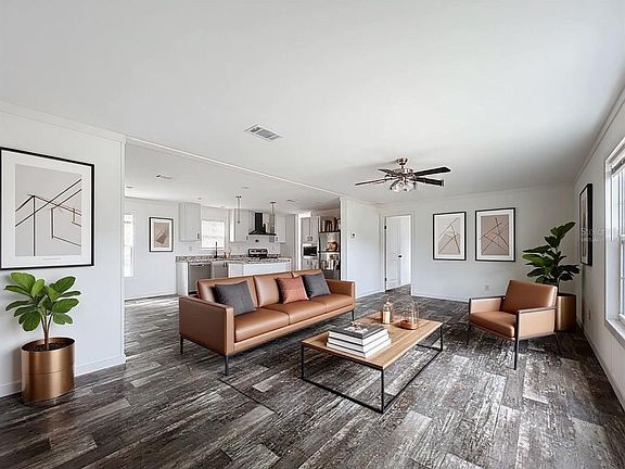 Eligible for a USDA loan, meaning ZERO DOWN PAYMENT FINANCING for qualified buyers -- an incredible opportunity to own a brand-new home and land without breaking the bank! This stunning brand-new 2025 3-bedroom, 2-bath manufactured home sits proudly on nearly half an acre of cleared land. And the best part? You own the land! No HOA. No lot rent. Just peaceful coastal Florida living at its finest. Step inside and fall in love with the bright, open-concept design that feels even larger than its nearly 1,500 square feet. The huge living room is perfect for relaxing or entertaining, flowing seamlessly into the large dining area where everyone can gather for meals and memories. At the heart of the home, the modern kitchen shines with an island, perfect for meal prep or casual dining. There’s also a pantry for all your kitchen essentials and plenty of cabinet space to keep things organized. You’ll love the split floor plan, offering privacy for the master bedroom suite with its own walk-in closet and ensuite bath with double sinks. The two guest bedrooms -- each featuring their own walk-in closets -- are roomy and comfortable, giving everyone their own personal space. Throughout the home, you’ll find thoughtful touches like ceiling fans, energy-efficient windows, and beautiful finishes that make this home move-in ready. Outside, the nearly half-acre lot is cleared and ready for your imagination. Create a backyard oasis, add a shed or workshop, or simply enjoy the open space and fresh air. There’s plenty of room for gardening, pets, or parking your RV or boat. Whether you’re a first-time buyer, downsizing, or looking for a peaceful retreat with room to spread out, this home checks every box. Don’t wait -- brand-new homes with land at this price don’t last! Schedule your showing today and make this beautiful property your own slice of Florida freedom.