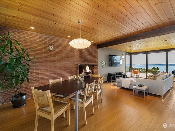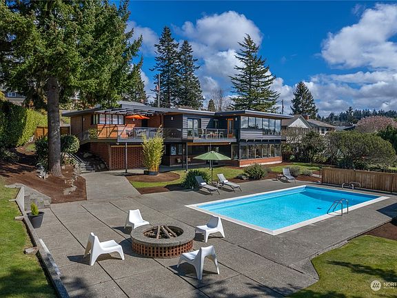 AMAZING panoramic Puget Sound & mountain views from this Shorewood gem! Mid-Century Modern at its finest, striking a balance between modern updates while respecting the timeless original character. 2nd ever owner, designed & built by local architect Warren Pugh featuring open beam wood ceilings & sleek modern lines. Floor to ceiling windows to enjoy endless dynamic views of ships passing, eagles soaring & orca pods. Enjoy resort-style living on over 1/3 acre of meticulously manicured grounds. Outdoor entertainer's dream! Cool off in the chic pool, gather around the fire pit, or enjoy stunning sunsets from the expansive deck. One of the best locations in Shorewood on a quiet street w/ no thru-traffic. Private comm. beach, trails & boat ramp.