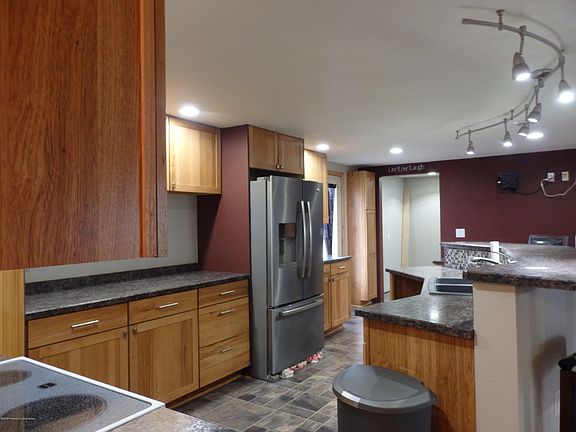 Located in a quiet subdivision with a great location, this large home has a lot to offer including a beautiful yard. Main floor has a new laundry room, large kitchen & dining area open to a huge living room. The kitchen has lots of cabinetry, a breakfast bar, pantry & desk. Living room has a vaulted ceiling, lots of windows & French doors leading out to decks. Three bedrooms & a full bathroom complete the main floor. Downstairs has an additional three bedrooms, two of them large and new. Beautiful large tiled bathroom with huge shower and dual vanity. Large media room, storage, and utility complete the basement. Seller has left materials to complete trim work etc. The tree lined backyard has a 640 SF Stamped Concrete Patio for entertaining! Acreage allows for additional garage/shop. (RH)