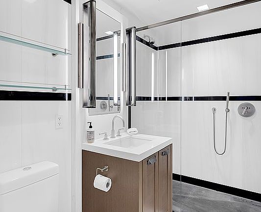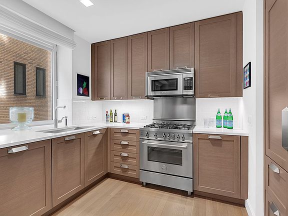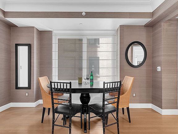 Blending classic charm with modern convenience, this fourth-floor unit boasts triple exposures featuring a light filled living and dining area with plaster coffered ceilings and moldings. There are solid oak wood floors, a very fine windowed chef’s-kitchen with top-of-the line appliances, Caesarstone countertops and Italian custom cabinetry. The primary bedroom has two large closets. The luxurious marble bathroom has exquisite finishes which include radiant floor heating, a Robern medicine cabinet, and a laundry closet with Miele washer/dryer.