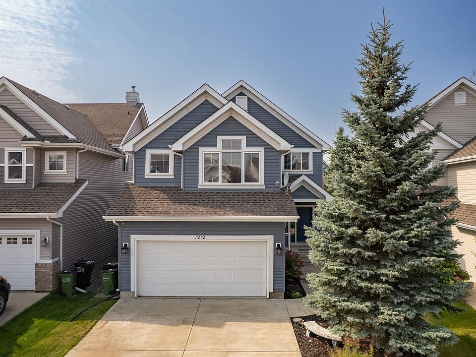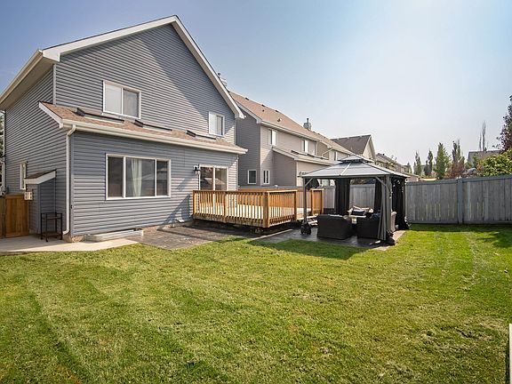 Welcome to this stunning 2,149 sq. ft. Landmark Marseilles III in Summerside! This 2-storey features rich hardwood floors, a bright great room with skylights & fireplace, and a flex room perfect for dining or office space. The gourmet kitchen boasts granite countertops, stainless steel appliances, ceramic backsplash & a walk-through pantry. Main floor laundry with sink adds convenience. Upstairs, the vaulted bonus room is wired for surround sound, plus 3 spacious bedrooms including a primary suite with 5-pc ensuite, soaker tub & separate shower. Enjoy central A/C and an entertainer’s dream backyard—fully landscaped with a concrete patio, gazebo & deck. Located on a quiet loop street, steps to a park, with an insulated garage. Full Summerside lake access with year-round activities makes this home the total package!