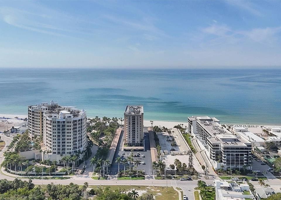 Welcome to Lido Beach Club, one of Lido Key’s most beloved and beautifully maintained Gulf-front communities. Perched on the 10th floor, this 1,421-square-foot residence at 1212 Benjamin Franklin Drive, Unit 1003, delivers beach views of the Gulf of Mexico, Sarasota Bay, and the sparkling coastline beyond — visible from every single room. This bright, airy condo offers two spacious en-suite bedrooms, each generous enough to serve as a primary retreat. Luxury vinyl plank and tile flooring run throughout, giving the home a clean, cohesive feel. The open gathering areas are centered around the panoramic scenery, showcased through walls of glass accented by wood-framed sliding plantation panels. Step outside to the 30-foot balcony, wrapped in wrought iron for that timeless coastal touch. From here, enjoy gentle breezes, sweeping vistas, and even a peek at the Ritz-Carlton Beach Club next door. Florida living doesn’t get much finer. The kitchen features granite countertops, a stainless three-door refrigerator, new microwave, and solid cabinetry with pull-out drawers and a pantry. The counter’s peninsula design allows for barstool seating — perfect for casual bites or chatting with company while you cook. A convenient in-unit stackable washer and dryer adds everyday practicality. Both bathrooms have been tastefully remodeled with quartz countertops, integrated sinks, and updated showers with a brand new water heater to ensure you have dependable hot water and energy-efficient comfort for years to come. Lido Beach Club itself sits right on the sand, offering a private beach, a beachside pool, tiki tables, grilling areas, and front-row seats to Sarasota’s postcard-perfect sunsets. Additional community features include a large club room perfect for parties and gatherings, fitness center, and recently renovated hallways with a stylish, contemporary look. An on-site property manager rounds out the peace of mind. All of this comes with unbeatable walkability to the world famous St. Armands Circle and a quick hop over the John Ringling Bridge to downtown Sarasota, where dining, theater, arts, and entertainment await.