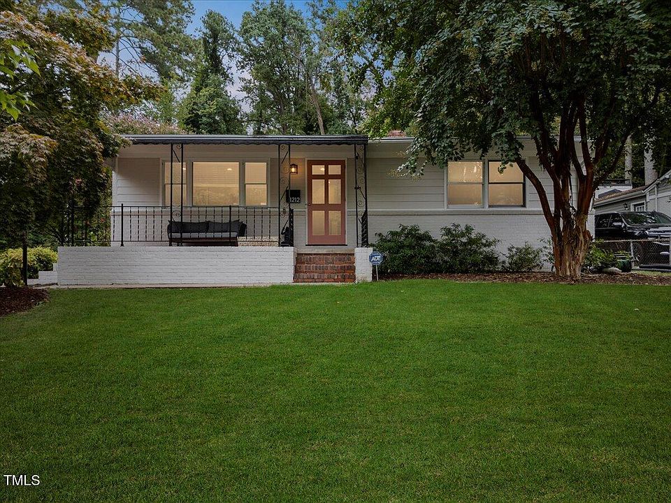 Renovated one-level home in walkable downtown Raleigh with vaulted ceilings, custom kitchen, and private backyard patio for easy indoor-outdoor living. Welcome to 1212 Brookside Drive, a thoughtfully updated one-level home in downtown Raleigh. The painted brick exterior highlights its classic character, while interior upgrades bring a fresh and functional style. In 2022, both the interior and exterior were professionally painted, and electrical improvements were made throughout, including the replacement of 2-prong bedroom outlets with GFCI-protected 3-prong receptacles. Inside, hardwood floors run through the main living areas; please note that the floors could benefit from refinishing. The front living room serves as a central gathering space and connects through the hall to the renovated kitchen, creating a layout that works well for both everyday living and entertaining. The kitchen was remodeled in 2020 with custom cabinetry, checkerboard flooring, updated countertops, sink, and stainless steel appliances. A tankless water heater and dedicated electrical circuits were also added during the remodel. Updated lighting from Watford Electrical includes 17 recessed can lights across the family room, kitchen, and hallway—all on dimmers with dual zones for flexible ambiance. A bright dining space within the kitchen adds warmth and flow. The utility and laundry room provides convenience, additional storage, and backyard access. The bedroom layout offers flexibility and privacy. The owner's suite features a private hallway entry with exposed brick, vaulted ceilings, and a painted brick accent wall. A large split closet system with a window provides generous storage, and a private exterior door connects directly to the backyard. The en-suite bath is fully updated with quartz countertops, white-washed maple cabinetry, dual sinks, tile flooring, new fixtures, and a spacious walk-in shower. Within the same hallway are two secondary bedrooms and a full guest bath with tile flooring and tub-shower combo. In the backyard, a 2020 addition of a custom patio with power, lighting, and conduit (installed by Watford Electrical) supports entertaining, outdoor dining, or string lighting for evening ambiance. The shed also includes power, interior lighting, and outlets inside and out. Life at Brookside offers the convenience of downtown Raleigh, where you can start the day with coffee at Optimist, enjoy dinner and cocktails at Standard, and return home to a charming and functional one-level home.
