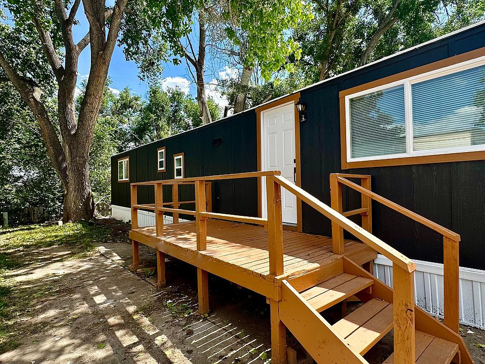 Hello! An ALL-AGE community offering a 2 Bedroom 2 Bathroom fully renovated home on the edge of Loveland towards Estes Park. Pet Friendly, Lot Rent at $555, and the ability to build your own privacy fence with management approval. The home offers new custom-built kitchen cabinets, added pantry, quartz countertops, an island, and an added dishwasher. All NEW stainless kitchen appliances are included and under warranty! New carpet, fresh paint, and all new hardware. Don't lose this amazing opportunity to view this home! If you are looking at Seller Financing, please contact the listing agent for more information.