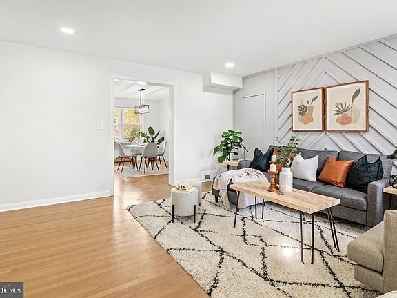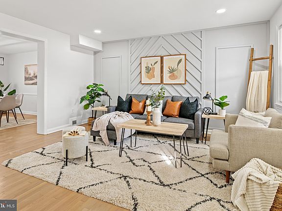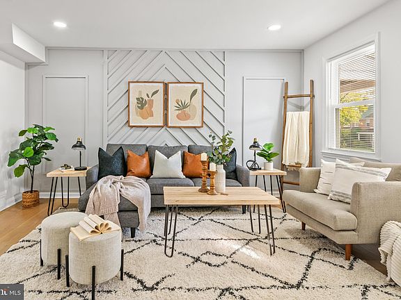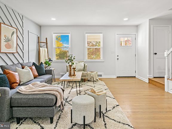 Welcome to this beautifully updated 4-bedroom, 2-bath row home that blends character and modern style! Step onto the inviting front porch—perfect for morning coffee or relaxing evenings—and into a warm living space featuring gleaming hardwood floors and a custom-designed accent wall that adds a touch of contemporary flair.  The kitchen is both stylish and functional, showcasing chic light fixtures, ample table space, and a walkout to the backyard—ideal for entertaining or enjoying outdoor dining. Upstairs, you’ll find comfortable bedrooms, including a  primary suite with its own custom wall design and a full bathroom.  The finished basement offers additional living space with a bedroom and a full bath—perfect for guests, a home office, or a recreation area. Parking is easy with a private driveway located in the back.