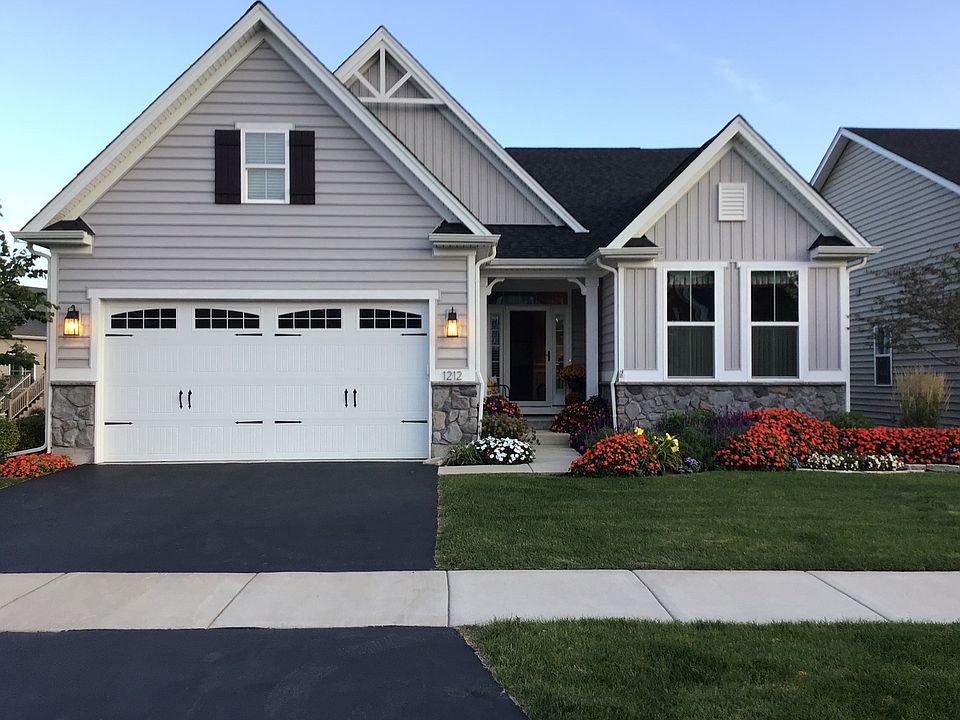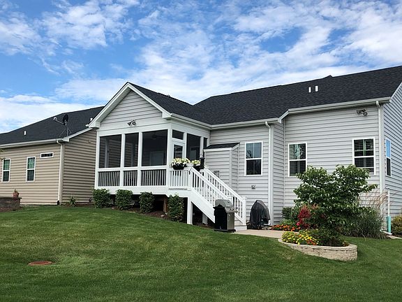 This home sits on a premium lot and is better than new with high end finishes throughout including elaborate mill work, numerous amenities and upgrades. 1st floor living at it's finest. Hardwood floors through out most of the home. Open floor plan makes for great entertaining. Gorgeous Kitchen with white upgraded raised panel cabinetry, granite counter tops, subway tile back splash and ALL SS appliances including a double oven and high end refrigerator/freezer. Enjoy the great outdoors on screened in porch which leads to a grilling patio and is surrounded by plush low maintenance landscaping with in ground sprinkler system. Master Bedroom has double recessed tray ceiling, plantation shutters and walk in closet. Luxury master bath has crown molding, Granite double vanity, custom double shower with ceramic tile surround all the way to the ceiling, built in bench and transom window. Freshly painted foyer/entryway is stunning with double recessed ceiling with crown molding & custom mill work front door with beveled lead glass insert, glass side lights with custom plantation shutters and transom window above. Full unfinished basement. Enjoy Stone Gate West maintenance free living. Short walking distance to clubhouse, pool and walking trails. Cheerful sunny home in immaculate condition with tasteful decor. Stonegate West is an age targeted community not age restricted.