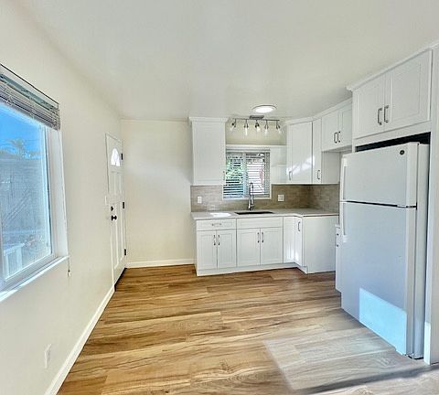 This charming, newly remodeled studio is available now in the highly desirable Mesa neighborhood, just one block from Shoreline Park. The space is bright and airy, filled with natural light from large windows and solar tubing.Inside, you'll find new wood flooring throughout, a ceiling fan in the main living area, a double closet, and an extra storage closet. The full kitchen features all new appliances and opens through a glass sliding door to a private deck with a small garden perfect for relaxing outdoors. The brand-new bathroom includes a beautiful tile shower (shower only).Located in a quiet and friendly neighborhood, this property is within walking distance of cafes, shops, and the beach. Street parking is available. All utilities are included except for Wi-Fi and cable. A shared washer and dryer are provided on-site.
