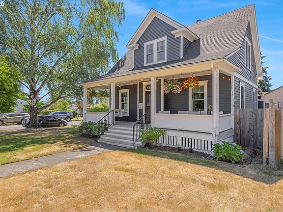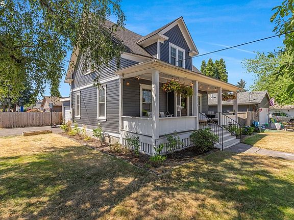 OPEN HOUSE SUNDAY {10/26} FROM 1-3! This charming 1909 farmhouse, set on a desirable corner lot, perfectly balances historic character with modern updates. From the moment you enter, you'll be greeted by a thoughtfully designed floor plan, original fir wood floors, beautifully preserved woodwork, and vintage hardware that reflect the home's rich heritage. Large, energy-efficient windows fill the space with natural light, while the inviting front porch offers an ideal place to begin and end your day. The spacious living room and formal dining room feature elegant arched entries. The fully renovated kitchen is a true centerpiece, featuring stainless steel appliances, gas stove, tile flooring and backsplash, slab granite countertops and a classic apron sink. The oversized upstairs bathroom includes a skylight along with generous built-in storage. Recent upgrades include updated electrical and plumbing systems, central air conditioning and refinished original floors. A large two-car garage adds both convenience and additional storage. Just blocks from historic downtown and several beautiful city parks, this lovingly restored home offers not only comfort and functionality, but also an unbeatable location. Don’t miss the opportunity to own a true historic gem that effortlessly blends vintage charm with modern living.
