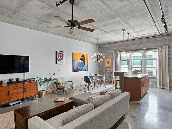 Come enjoy an exceptional urban lifestyle in the heart of Channelside, steps from restaurants, coffee shops, a dog park and immediate access to the $3 billion Water Street development; walk to concerts and hockey at Benchmark International Arena, hop the trolley to Ybor City, or stroll Tampa’s Riverwalk. This beautifully updated loft- style residence at The Meridian offers one bedroom and 1.5 baths with authentic industrial character—polished concrete floors, exposed block walls and exposed ductwork—framing a generous open great room ideal for entertaining that combines living, dining and a modern kitchen with sleek cabinetry, granite countertops, pantry and stainless appliances. Practical conveniences include a welcoming foyer with coat closet, half bath, and laundry closet with stacked W/D; the primary suite features a walk-in closet and an updated en-suite bath. Significant 2018 improvements comprise appliances, countertops, plumbing fixtures and the air handler, with a 2019 water heater replacement, and the home is move-in ready. One assigned gated parking space is included; building amenities at The Meridian feature secured entry and parking, plus a rooftop terrace with pool, hot tub, cabanas and a club room—an ideal blend of downtown energy and everyday comfort.