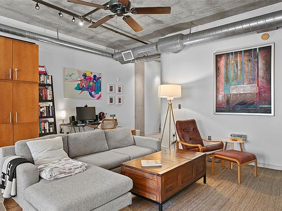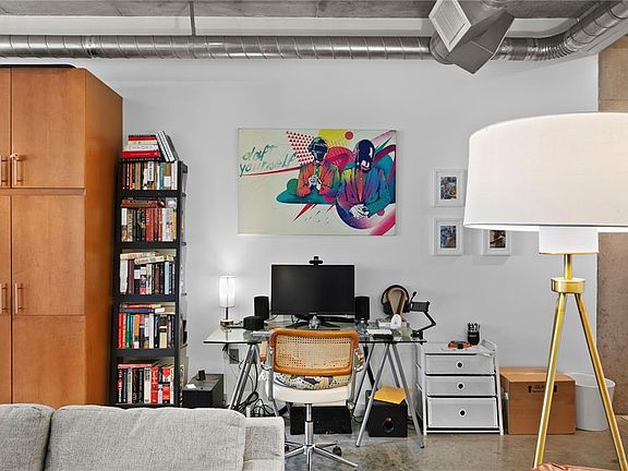 Exposed ductworkGranite countertopsAuthentic industrial characterExposed block wallsUpdated loft-style residenceUpdated en-suite bathSleek cabinetry