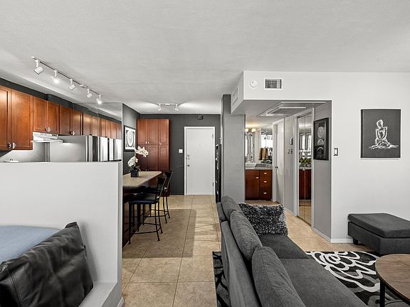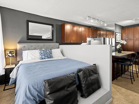 This fourth floor furnished studio has everything you need! View included! Can be unfurnished as well. Monthly rental rate includes electricity, water, wi-fi, trash/recycling, pest control service, and one reserved space in the parking garage. Pets negotiable and must follow HOA rules on size, etc.