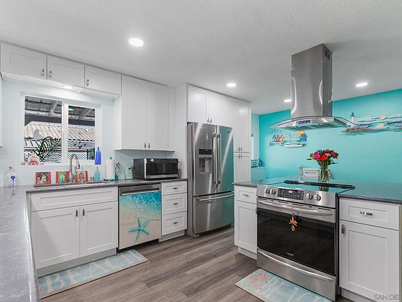 Welcome to one of the loveliest home in Ramona Terrace Estates! The house was completely rebuilt in 2023 from top to bottom. Everything has been replaced, including all electrical, plumbing, high-end appliances, a/c and heating, water heater, flooring, walls (interior and exterior), ceilings, bedrooms, bathrooms, kitchen, lighting, fixtures, patio deck, patio cover, roof, and landscaping. The owner spared no expense to make this house a beautiful, peaceful place to live. All windows and screens have been replaced with long-lasting, eco-friendly dual-pane windows, covered by top-down, bottom-up honeycomb shades throughout the home. All doors, interior and exterior, are new, including a convenient vanishing screen at the front door and an added slider in the master. The flooring is durable engineered laminate and runs through the entire house, making cleaning very easy. The kitchen is a thoughtfully designed, with custom built-in cabinetry containing slide-outs and slow-closing drawers, a large pantry, gorgeous quartz countertops in a color called “Ocean Storm,” convenient island with loads of storage, a fabulous glass-topped, self-cleaning induction range with convection bake and air fry features, and a long peninsula containing ample storage. Both bathrooms have been completely rebuilt with specialized cabinets, new lighting, fixtures, mirrors, toilets, and showers. The shower in the master bath is built with beautiful custom Italian tile. The master bedroom is spacious and contains a large closet with custom built-ins by California Closets as well as a slider out to the front porch. The laundry area has plenty of room for full-sized washer and dryer and also has a sink and storage. All interior walls and ceilings have been replaced with sheetrock which has been custom painted. There are eco-friendly air conditioning/heating splits throughout the home and a tankless water heater, which is seldom found in a mobile home. The exterior of the house has been completely rebuilt with hardie board and custom painted. One of the best features of the home is the magnificent front deck which is built from highly-durable Trex and runs the entire length of the house. The deck is surrounded by white vinyl fencing which creates a private place to sit and enjoy quiet mornings and evenings. The patio cover is brand-new and sturdily built. The roof has been entirely replaced with asphalt shingles and double-tarred to ensure there are no leaks. The carport has expanded posts to ensure enough parking space and green turf has been installed for additional aesthetics. There is a large, custom-built shed with electricity in the back, and the entire property is enclosed by white vinyl fencing for premium privacy. The beautifully landscaped back yard is exceptional with apricot trees, lavish flowers, automatic watering system, a spacious turf area and brick pavers. You can relax and enjoy morning coffee or evening beverages in this peaceful setting. Ramona Terrace Estates offers many amenities and is a friendly place to live and enjoy your life. Come see this gorgeous home today and make an offer!