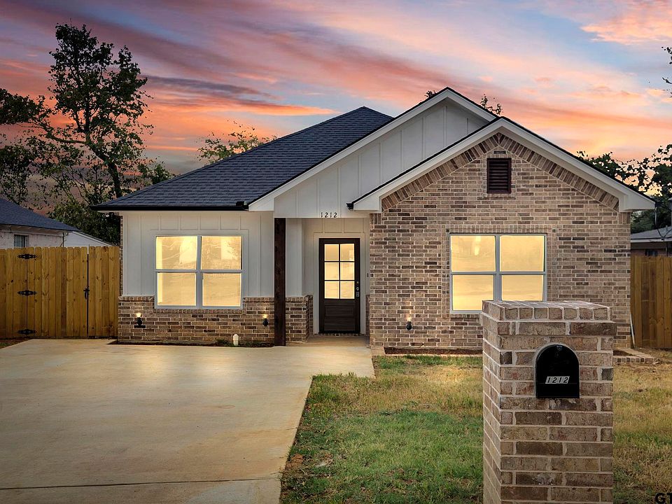 Welcome to your brand-new dream home! This 2024 construction offers the perfect blend of modern design and traditional with a brick and siding exterior. Featuring 3 spacious bedrooms and 2 baths, this home boasts an open-concept layout that seamlessly connects the living area and kitchen. Perfect setting for entertaining or family time. Enjoy vinyl plank flooring throughout the home, providing durability and elegance in every room. The living room’s vaulted ceilings create an airy, inviting ambiance. The kitchen features sleek granite countertops, custom cabinetry and stainless steel appliances. The primary suite features an oversized closet and a bathroom featuring a double vanity. Energy-efficient spray foam insulation on the walls and ceiling helps keep utility bills low year-round. Enjoy outdoor living on the covered porch, enclosed with a wooden picket fence, perfect for privacy and pets. Ideally located just 0.5 miles from the medical center and only 1 mile from Tyler Junior College. Don’t miss your chance to own this move-in-ready gem!