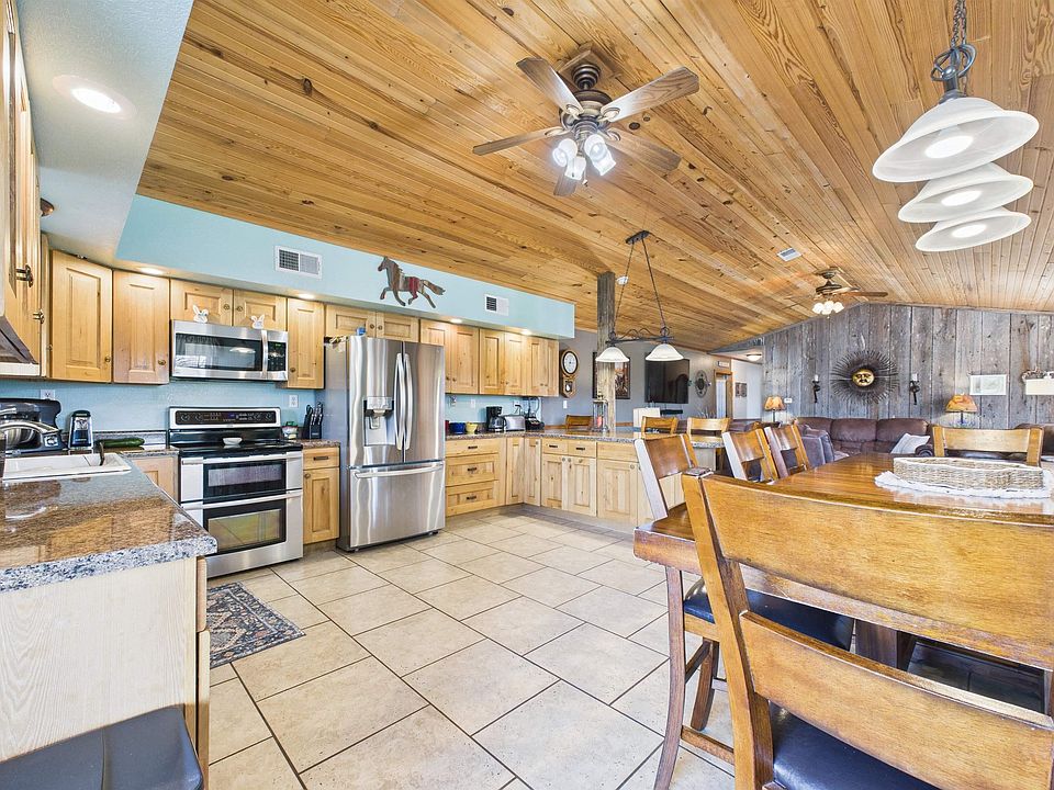 Embrace the ultimate country lifestyle with this unique property featuring two homes under one roof, a spacious garage in between, a large detached shop with car lift, horse corrals and 62 sprawling acres m/l with four tranquil ponds as well as live water from Mill Creek. Approximately 20 AC M/L of pasture, all fenced and cross fenced with divided pastures for rotational grazing and frost proof automatic waterers. Perfect for multi-generational living, this unique setup offers privacy and community all in one! The main home features 1800 sq ft, 4 bedrooms, 2.5 baths with an open concept kitchen/living area. The second home features 3 bedrooms, 2 baths, vaulted ceilings and a large, covered deck with access to the 24-foot above ground pool. Between the two homes is a garage/common area with a kitchen, perfect for gatherings and relaxation. This unique property is a rare find, offering flexibility for families, hobbyists, or anyone looking to embrace a rural lifestyle.