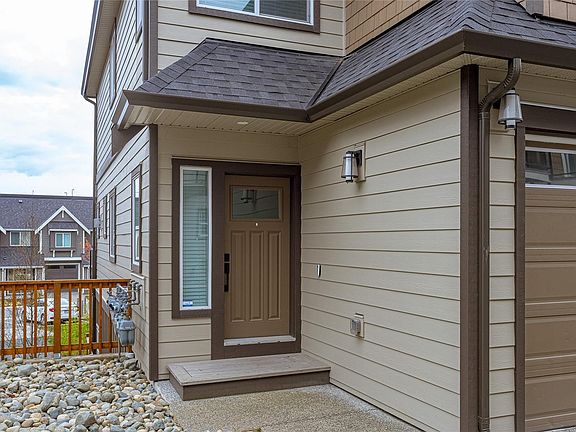Pristine End-Unit Townhome in Southpoint Ridge, Bear Mountain! This bright, beautifully maintained 3-level townhome offers 4 bdrms, 4 baths & 2,105 sq ft of modern, functional living space. The main floor features a stylish open-concept kitchen w/quartz countertops, flowing into spacious living & dining areas. Step out to your private deck for BBQs & lounging. A 2-pc bath & double-car garage complete this level. Upstairs, enjoy 3 bedrooms, including a generous primary suite w/ a 4-pc en suite & walk-in closet, plus a full bath & laundry rm. The fully finished lower level is ideal for teens, guests, or in-laws, w/a family/rec room, 4th bdrm, 4-pc bath, storage, & walk-out covered patio leading to a fenced backyard. High end upgrades incl. a gas fireplace, on-demand hot water & ductless heat pump with 4 A/C heads. Ideally located w/easy highway access & close to the Westshore's growing array of shops, schools & amenities, offering a blend of luxury & practicality for comfortable living.