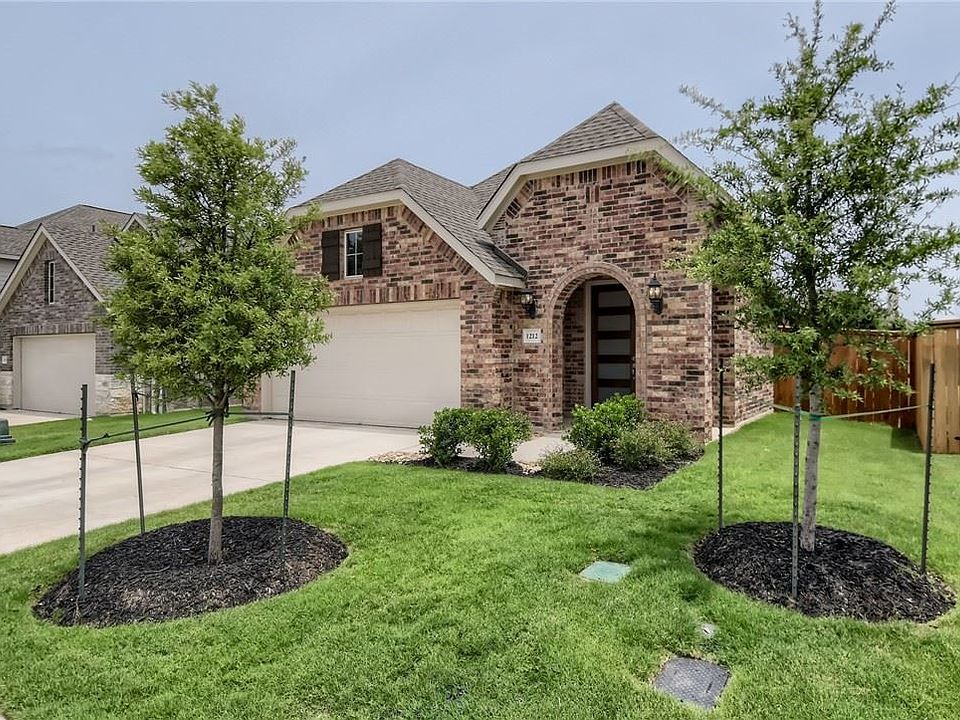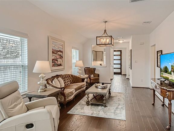 Immaculate, 3 bedroom single story in lovely Oaks at San Gabriel. Classic wood flooring. Wall of windows for natural lighting. Open concept kitchen boasts stainless appliances, herringbone subway tile backsplash, farmer's sink, gorgeous quartz counters, tall cabinets, upgraded hardware, and gathering island. Large eat-in area flows to great room""perfect layout for entertaining. Amazing primary suite with vintage light fixture, double vanity, white Carrera tile, over-sized shower, and an Elfa closet system. 2 more lovely secondary beds with a full bath. Office area with built-ins for the busy home exec. Enjoy sipping sweet tea on the screened-in porch overlooking the expansive backyard. Modern sophisticated elegance at its finest.