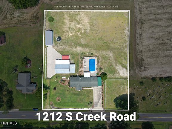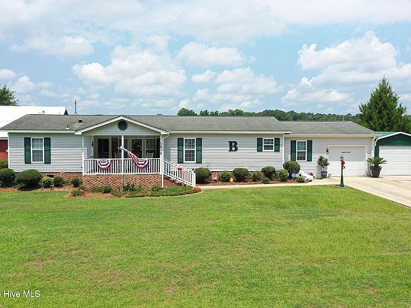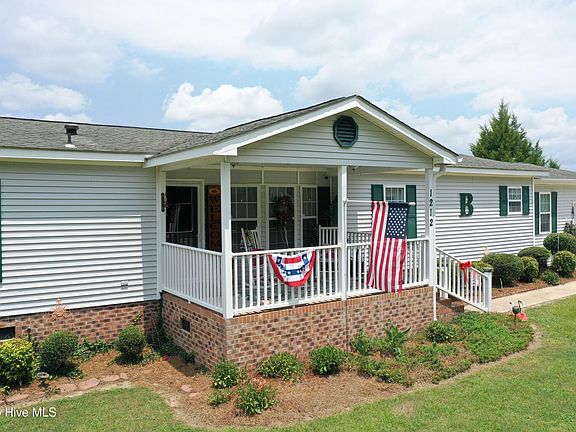 Spacious country retreat on 0.95 acres in Orrum, NC. This well-maintained home offers privacy, homestead potential, and space to live freely. The property features a large saltwater pool with adjacent storage, a covered front porch, and beautiful landscaping with palm trees, agave, and prickly pear cactus. The backyard is partially fenced and includes an 18x40 wired metal building with a concrete drive—perfect for hobbies, storage, or a workshop.