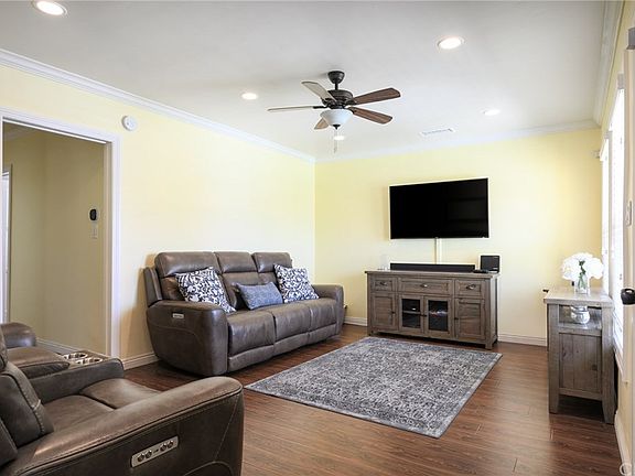 This turnkey home is nestled in a cul-de-sac! You are greeted by a manicured front lawn and a walkway leading to the welcoming porch. Walking in you will see that the owners spared not one thing! Walk into the living room with an abundance of natural light. The kitchen offers white cabinets with granite counter tops and an ample size dining area. Conveniently located right off the kitchen you will have your laundry area with plenty of room for storage and a side door for convenient access to the back yard. Walk down the hallway and on the left you will see that the bathroom was remodeled within the last few years. All bedrooms are a great size with a good amount of closet space. The bedroom on the right has access to the manicured back yard that also has many fruit trees including figs, guava, pomegranate, lemon, prune and loquat. The large patio area was recently built with recessed lighting, a ceiling fan and wireless speakers. There's plenty of recently poured cement and a well maintained grass area for your entertaining. The panel has also been recently upgraded to 200 amps and new wiring in the last few years. Owner also added central air for those hot summers! You will see that all the major items have been upgraded, including the windows, roofing, exterior paint and cement in front and back yard.