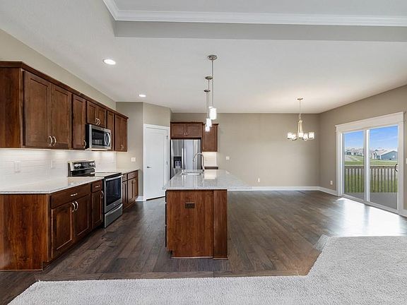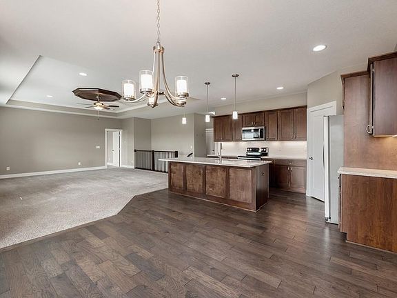 BETTER THAN NEW CONSTRUCTION 4 bedrooms 3 bath walk-out Ranch has tons of custom upgrades including 9' ceilings upstairs and down, hand-scraped hardwood floors on the main, and a built-in drop zone by the garage. The oversized seller suite features tons of large windows, a lighted tray ceiling, a HUGE walk-in closet, attached walk-through laundry, and a custom tiled shower & glass doors. The kitchen boasts a massive granite center island, under-counter lighting, soft close drawers, and a lighted pantry. The walkout lower level has a wet bar with space for a full-size refrigerator and 4th bedroom. Plenty of unfinished space for an additional bedroom, home gym, or a large storage area. Enjoy hours of outdoor time under the covered deck with access to the privacy-fenced backyard overlooking a park/sand volleyball court. Act quickly, this gem will not be on the market long!