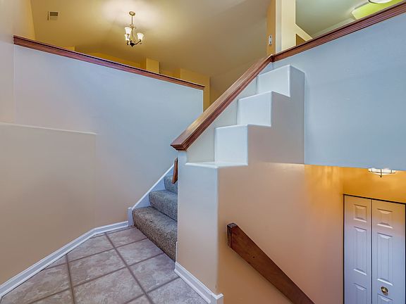 Bright and inviting second-floor townhome in Cobbler's Crossing! This open-concept unit features vaulted ceilings and an abundance of windows filling the space with natural light. Enjoy 2 generously sized bedrooms and a full bath with direct access from the primary. The large eat-in kitchen is equipped with stainless steel appliances and a breakfast bar, flowing into a cozy living room with a charming fireplace. Step out onto the private balcony, tucked among mature trees for a peaceful retreat. Attached garage and worry free maintenance as HOA has just replaced all siding. Unit owners can also rent, making this a great option for the savvy investor.