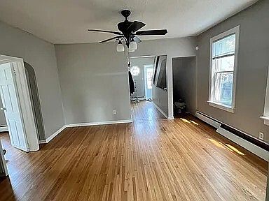 The inside was renovated in 2023 and 2024 with all new appliances and new bathroom upstairs. 4 bedrooms and 1 bath on main level and upstairs. Lower level is 1 bedroom and 1 bathroom. Both units have their own washer and dryer. Resident pays all utilities plus lawn maintenance and snow removal. Fuel expense is approximately $1800 with heating features of baseboard, boiler and hot water. Heating fuel is natural gas.