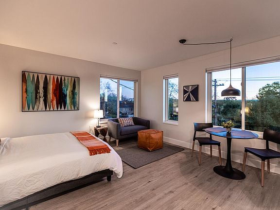 **Furnished** apartment! Mountain Views!! New construction! Contact us to receive a link to our video tour! Modern upscale apartment with views of the Lassen Mountain Range. Newly built from the ground up & located in a great spot in downtown Redding. Includes a kitchen with stone counters, stainless steel appliances (refrigerator/freezer, microwave, dishwasher), an induction cooktop along with pots, pans & all cooking utensils need to prepare a great meal. Please note there is no oven. There is a washer & dryer directly inside the apartment that you will have exclusive use of. The queen bed has upscale new mattress with luxurious 800 thread count bed sheets. There is a dining table or work station and a small sofa with leather pouf in front of large windows that let great light in (or use the blackout shades for a good nap during the day). Large screen smart tv (along with 70+ streaming channels included) & high speed internet wifi. This upscale, modern apartment building was newly constructed in 2022 making these the newest and nicest apartments in the city of Redding! Located at a lively intersection downtown, you can easily stroll to our downtown's nearby best spots like catching a show at the historic Cascade Theater, breakfast at Evergreen Coffee, a custom lunch wrap from Roots Juice Bar, dinner at Blade & Barrel, Cinders Wood Fired Pizza and you have to try Taste & See Creamery (get the Nutella Bonfire S'Mores flavor you'll thank me later). Great spot for traveling professionals! 6 minute or less walk to 2 different hospital systems. If you are from a bigger city, you'll likely love the urban, modern atmosphere and excellent walkability. Owner pays for all utilities - water, gas, electric, garbage, cable channels and high speed internet. Plenty of free on-street overnight parking is available and visible from your windows. No pets allowed, no exceptions. Must have good references, no prior evictions, enough verifiable income and good credit. No smoking permitted inside or outside on the premises. 3+ month lease preferred but open to a minimum of only 30 days. $1,000 refundable security deposit is required. *Please note we have only 1 bedroom and studio units in the building and everything is fully furnished.* The Lofts Redding Furnished Housing Redding, California Furnished apartment with mountain views, new furnishings, excellent internet, large screen smart tv, your own washer & dryer inside the apartment, ideal walkable location to restaurants, coffee shops, pubs & theatre. Owner pays for all utilities - water, gas, electric, garbage, and high speed internet. Plenty of free on-street overnight parking is available and visible from your windows. No pets allowed, no exceptions. Must have good references, no prior evictions, enough verifiable income and good credit. No smoking permitted inside or outside on the premises. $1k security deposit required. $45 application fee. Fast application process.