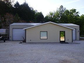 Morton Building located on the West edge of Osage Beach along Spring Valley Road with 8 acres included: 2.6 acres = Industrial zoning and 5.5 acres = Residential zoning. The building offers 2,320 square feet with 1800 square feet of shop and 520 square feet of office. The shop offers 11.5 foot ceilings and 2 insulated 10x10 bay doors and suspended lp heat. The office includes 1 bathroom with shower and 2 wall units for heat and AC. There is plenty of parking for all vehicles and lots of buffer between you and your neighbors. Electric service to building offers 240 service with 220 amps.