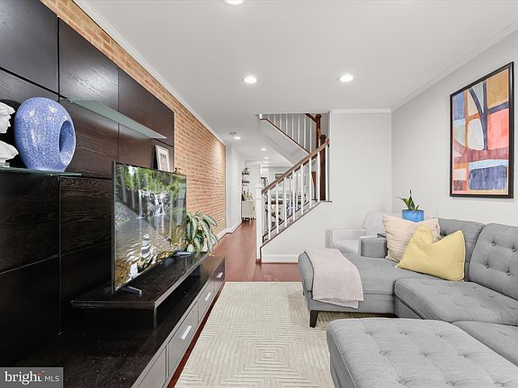 Introducing this beautifully updated rowhome in Locust Point, offering three bedrooms and three full bathrooms across three thoughtfully designed levels. A private parking pad, ample street parking, and a rooftop deck with 360-degree city views elevate everyday living. Inside, a neutral color palette, recessed lighting, and engineered wood flooring create a warm and inviting atmosphere throughout. Crown molding and an exposed brick accent wall highlight the front living room, while the open-concept layout seamlessly connects the dining area and kitchen. Featuring stainless steel appliances, granite countertops, shaker-style soft-close cabinetry, and a breakfast bar with pendant lighting, the kitchen is both stylish and functional. Upstairs, the primary bedroom suite has direct access to the rooftop deck along with a luxurious private bathroom boasting a frameless walk-in shower with bench seating and a dual sink vanity. A second bedroom and another full bathroom complete this level. The finished lower level extends the living space with a third bedroom, an additional full bathroom, and a utility room with laundry. Enjoy the best of city living located in the vibrant Locust Point neighborhood with local parks, shops, dining, entertainment options and so much more. Additionally, there are three years left on a CHAP credit.