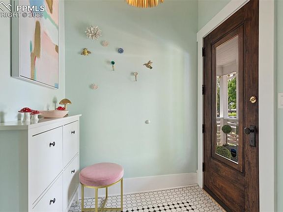 Just waiting for you… in the heart of historic Colorado Springs, where timeless charm meets modern luxury. This beautifully renovated 1895 home offers the best of both worlds—classic character preserved alongside thoughtful, high-end updates. Wake up to sunshine and garden views in the front bedroom’s custom mural, and enjoy elegant evenings dining beneath a sophisticated mountain lake panorama. Every detail is designed to delight. In 2018, the home was taken down to the studs and meticulously renovated while preserving original features like the refinished front and rear doors, hardwood floors, oak fireplace mantel and surround, and double dining room doors. All major systems were updated, including new drywall, wall and attic insulation, internal wiring, plumbing, high-efficiency furnace, central air, water heater, roof, stucco siding, and energy-efficient windows. The fully remodeled kitchen features custom soft-close cabinets, roll-out pantry shelves, granite countertops, stainless steel appliances, a spacious island, and pantry—ideal for both everyday living and entertaining. The layout is equally impressive. Two bedrooms offer attached ensuite bathrooms, providing comfort and privacy for guests or multi-generational living. Most rooms feature soaring 10-foot ceilings that enhance the home’s airy, expansive feel. The grand primary suite includes a cozy sitting area and a charming ensuite bath. Outside, you’ll find three paved off-street parking spaces and a beautifully landscaped yard that creates a relaxing retreat in the middle of the city. Located just minutes from the shops and restaurants of Old Colorado City and Downtown Colorado Springs—and with mountain trails close enough for spontaneous weekend hikes—this home offers the perfect balance of city convenience and natural beauty. More than that, it’s a home that loves you back. Historic yet modern, elegant yet welcoming—this is a place to put down roots, make memories, and truly feel at home.