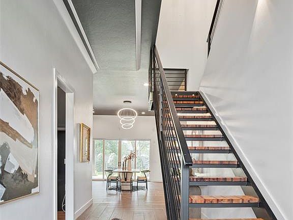 Sleek architectural lines & warm natural materials define this striking home, where stucco & brick meet rich Ipe Brazilian wood accents & glass-paneled garage doors on a 3-car tandem garage. Beautiful landscaping frames the facade & sets the stage for what lies beyond. At dusk, subtle exterior lighting & sunset reflections create an unforgettable welcome. Step through the entry to soaring ceilings & a floating open-riser staircase. Across the room, walls of Pella windows flood the interiors with natural light & frame picturesque views of the outdoor living space. The great room & dining area flow into a dramatic chef’s kitchen anchored by an eat-in island w/double sinks. Outfitted with Thermador 48" range, full-size refrigerator & freezer, wine cooler & generous custom cabinetry, the space is both high-performing & visually stunning. A massive butler’s pantry with floor-to-ceiling storage & open shelving provides abundant space for culinary essentials and entertaining. Upstairs, the luxurious primary suite is a sanctuary wrapped in natural light & moody tones, offering a spa-like bath with freestanding soaking tub & walk-through shower with triple showerheads. A custom walk-in closet & adjoining laundry room add everyday convenience. Spacious secondary bedrooms & flexible landing spaces complete the upper level. Downstairs, the main level also features a large mudroom, complete with dog wash station, as well as another bedroom & full bath; this flexible space is perfectly suited for a guest suite, office, or secondary living room. Through expansive sliding doors, the backyard becomes an extension of the interior, beckoning the outdoors in. The covered patio, with Ipe Brazilian wood ceiling, features a built-in fireplace & a fully equipped outdoor kitchen with gas grill & refrigerator. Carefully curated to balance modern sophistication & natural warmth, this home is as comfortable as it is captivating...from sunrise to starlight. Schedule your private showing today!