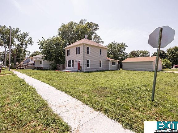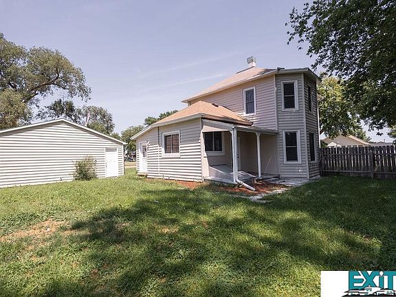 Old 2 story classic, large eat in kitchen, formal dining, first floor laundry, vinyl siding, updated windows. Air Conditioner seems to be a newer model. Kitchen could be updated but very useable. One BR on main level. 3 Bedrooms and bath on 2nd floor. Oversizee. Super large yard. Home is located on a corner lot. House is only 2 blocks from elementary d detached garagschool.